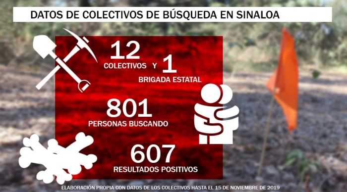 En este mismo año, se conformó la Brigada Estatal de Búsqueda, que agrupa a los integrantes de 9 de los 12 colectivos en Sinaloa, apoyados por la Comisión Estatal de Búsqueda, logrando hacer búsquedas en todo el estado.