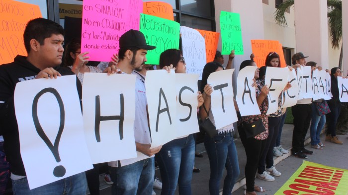 Los integrantes de los colectivos “Voces Unidas por la Vida” y “Uniendo Corazones”, realizaron una marcha por la avenida Álvaro Obregón, en la que también participaron, la Comisión Estatal de Búsqueda y la Comisión de Defensa de los Derechos Humanos de Sinaloa.