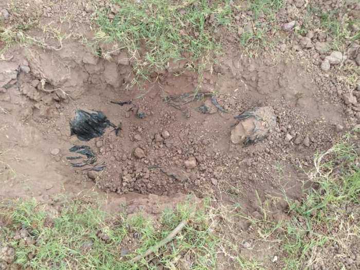 La osamenta estaba oculta entre la maleza, pero fue rápidamente localizada, debido a que todavía, despedía olores fétidos, los restos aparentemente estaban envueltos en plásticos negro, a muy poca profundidad.